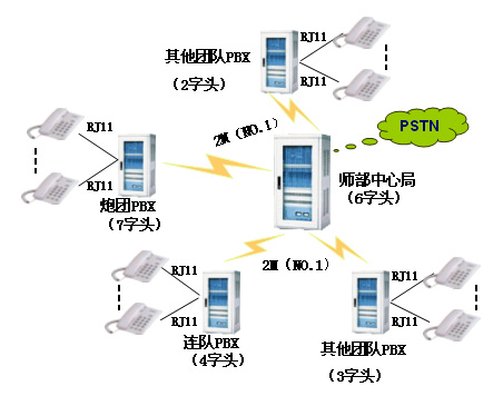 2) 中心局与分局之间通过PCM的NO.1信令组网;