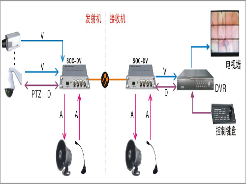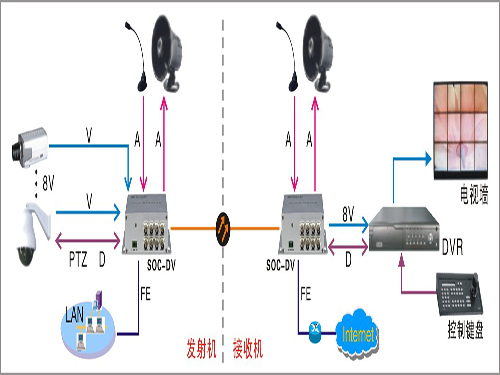 SOC-DV系列视频光端机采用先进的数字视频及光纤传输技术,将视频信号在单芯光纤上实时同步、无失真、高质量地传输。此系列产品可根据用户要求配置成多路双向视频、音频、异步数据等业务。SOC-DV视频光端机采用全数字视频无压缩传输技术,高质量的视频效果可满足用户的需求, 安装简便易行, 无需进行现场调节, 稳定性高 。该光端机采用结构模块化设计,用户可根据现场具体情况灵活选择或定制配置,SOC-DV04/08系列视频光端机板卡也可插入SOC-30JX19机箱中,19"集中式机箱直接上架,作为集中式视频光端机业务板卡使用。